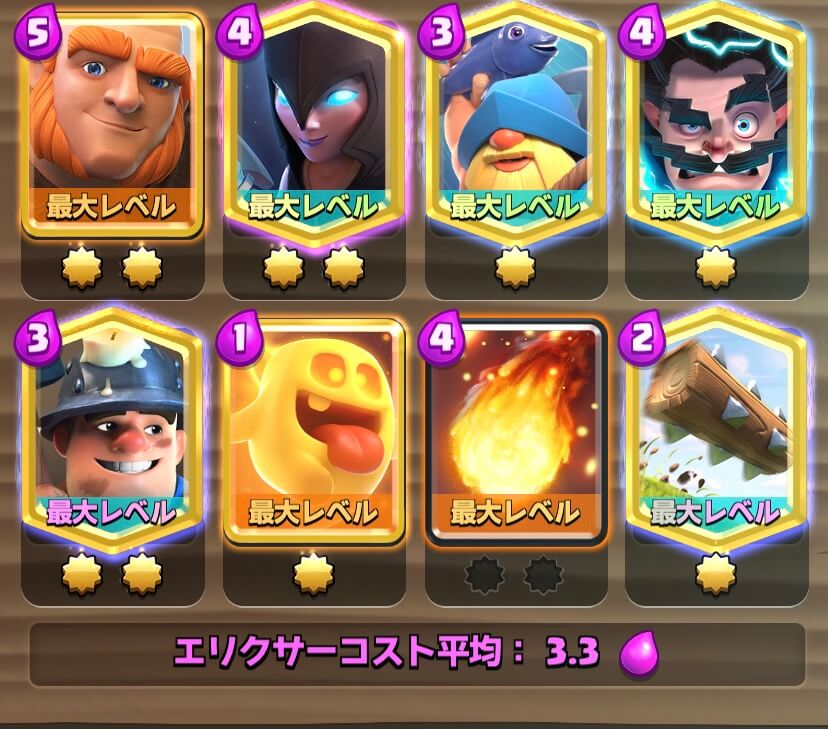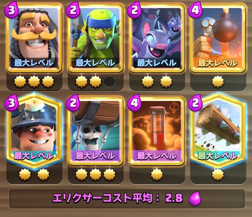 こちらのデッキはプリンセスがきついので、プリンセスを処理するためにポイズンを使わなければなりません。