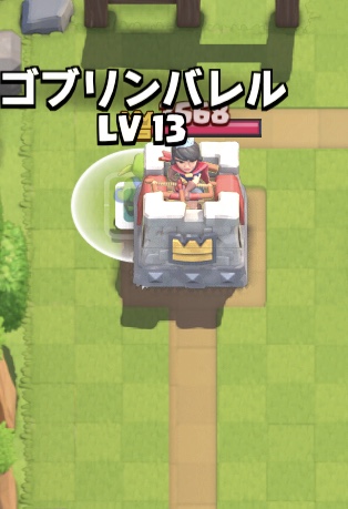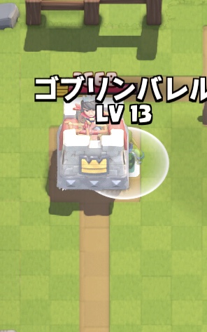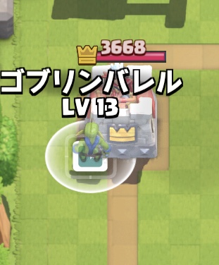 この位置に投げることにより、相手がいつも通り真ん中にローリングバーバリアンを転がすと、バレルの3体いるゴブリンの内1体が残り、ダメージを稼ぐことができます。