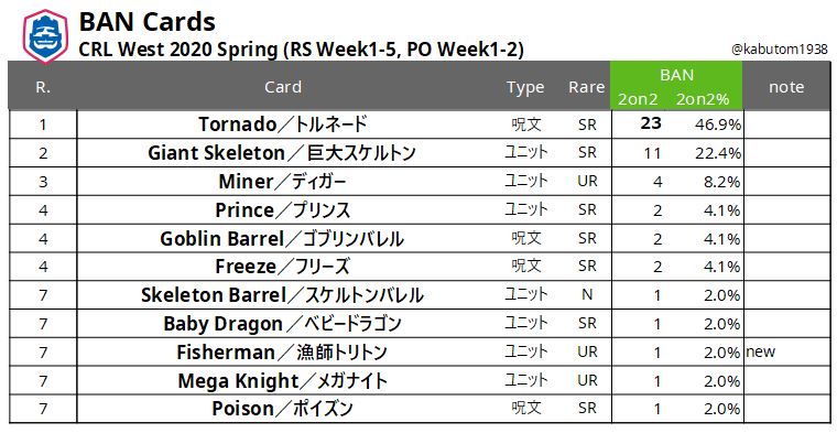 今季は2v2でのみBANピックルールが採用されました。1番人気はやっぱりこのカード、「トルネード」。