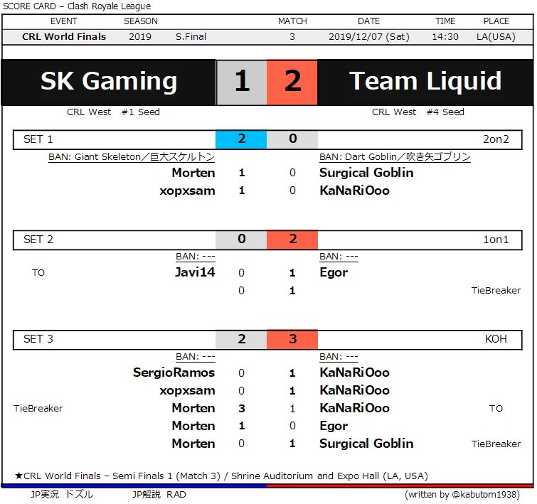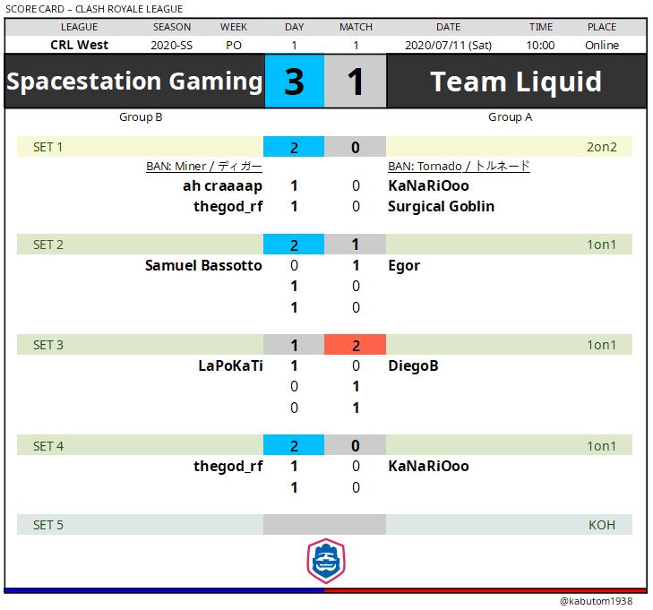 今回はこの、”もう1つのクラロワリーグ”ことCRL Westについて、2週にわたったプレイオフの結果と、シーズンを通しての順位表や個人成績などをまとめてレポートしていきます。