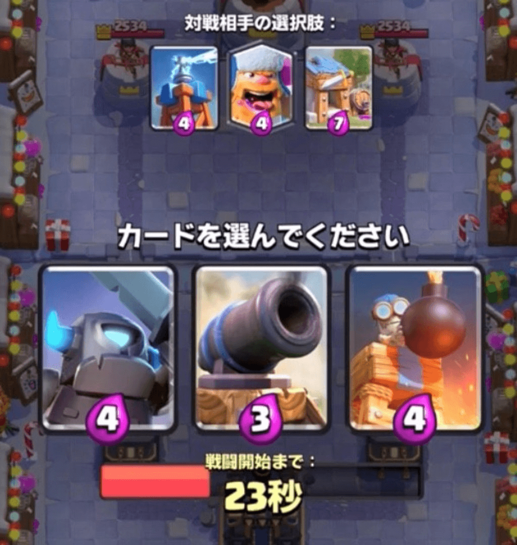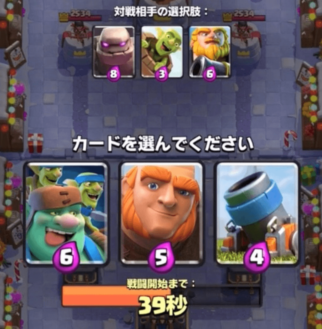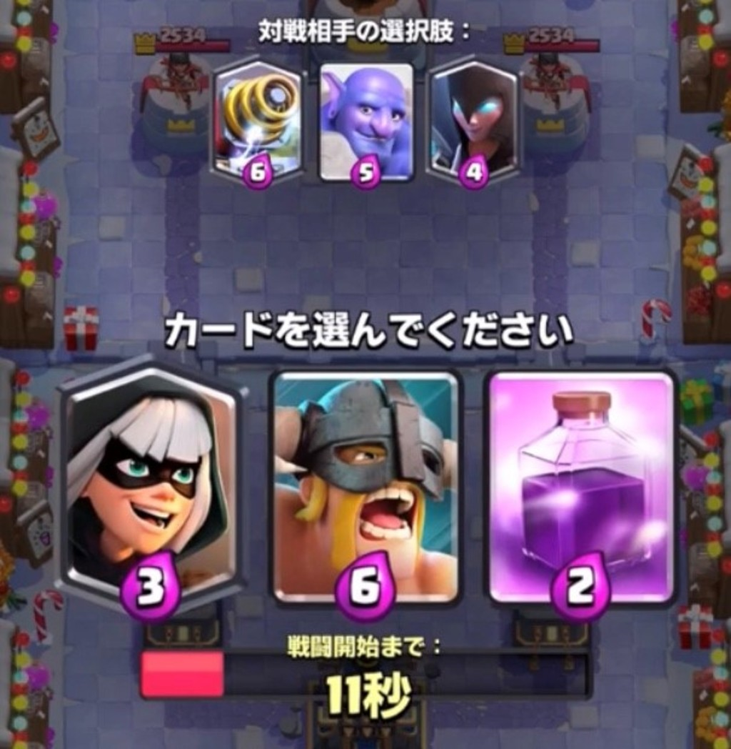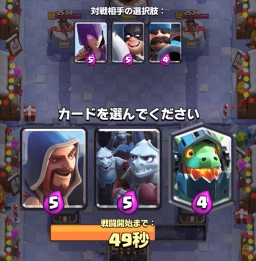 呪文の選択肢が序盤に来た場合、相手にゴブリンバレルの選択肢があったらローリングウッド系を取ります。同じように相手にロケット砲士の選択肢があれば矢の雨を取ります。