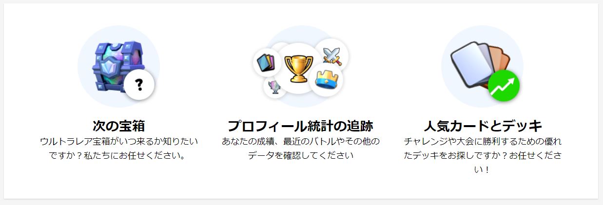 それでは、StatsRoyaleでどんなことができるのか、ざざっと見ていきましょう。