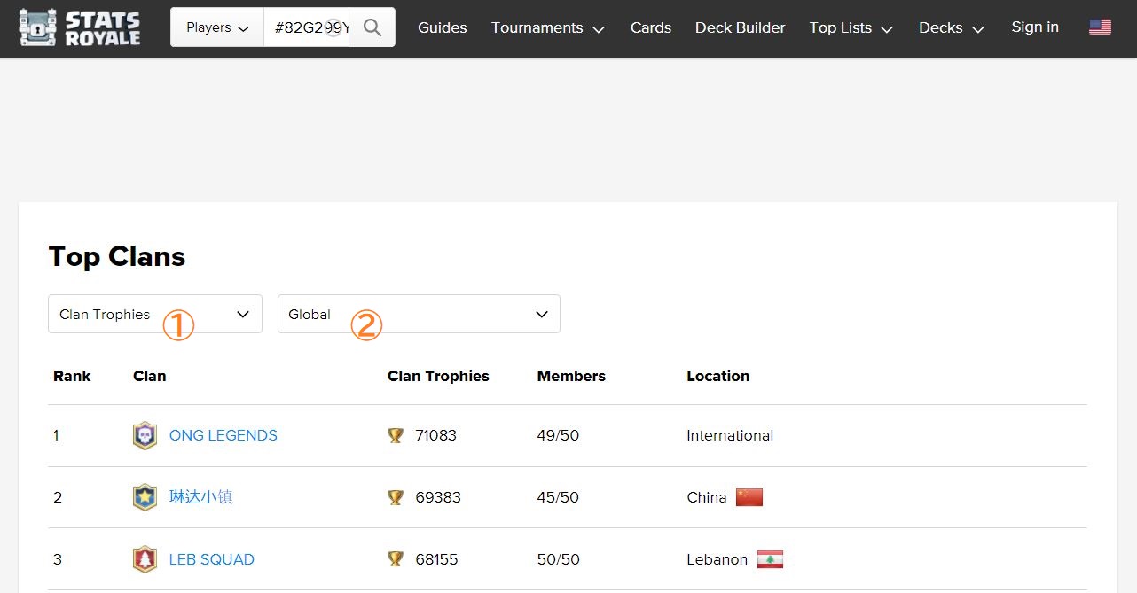 Top Lists(トップリスト)では、人気のカード・トッププレイヤー・トップクランの3つのリストをチェックできます。