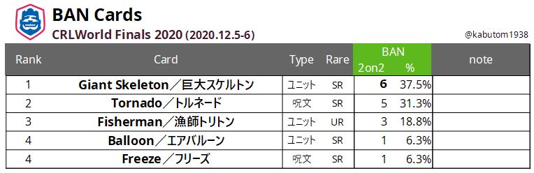 今大会でBANカード(使用禁止カード)ルールは、Set1(2v2)でだけ採用されました。