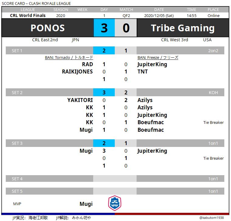 Semi finals 1 Set5 Game2: TQ Ruben選手 vs PNS Mugi選手動画リンク