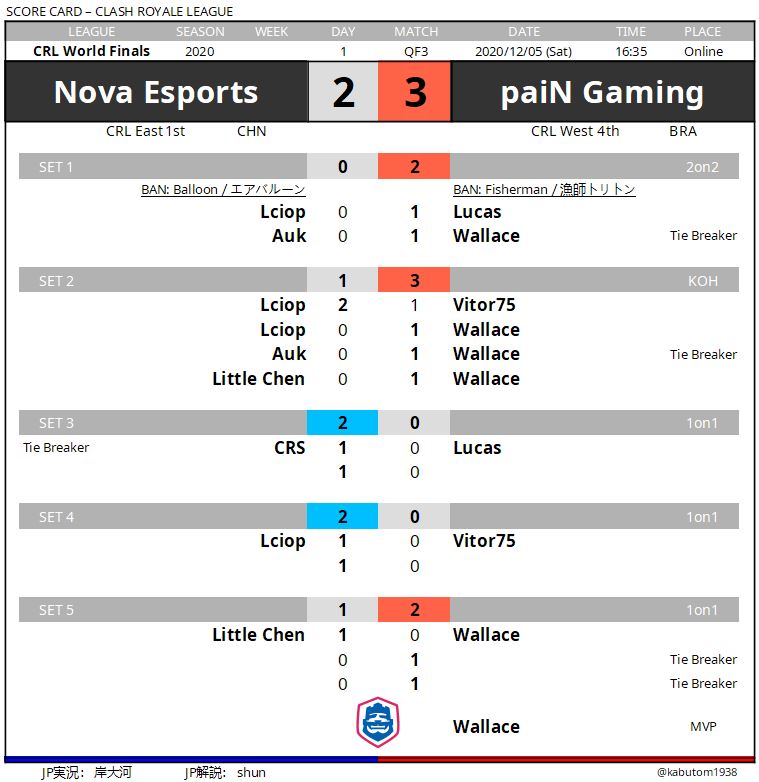 ファンタジーロワイヤル視点だと、Wallace選手を選んでいたか否かが大きな分かれ目となりました。