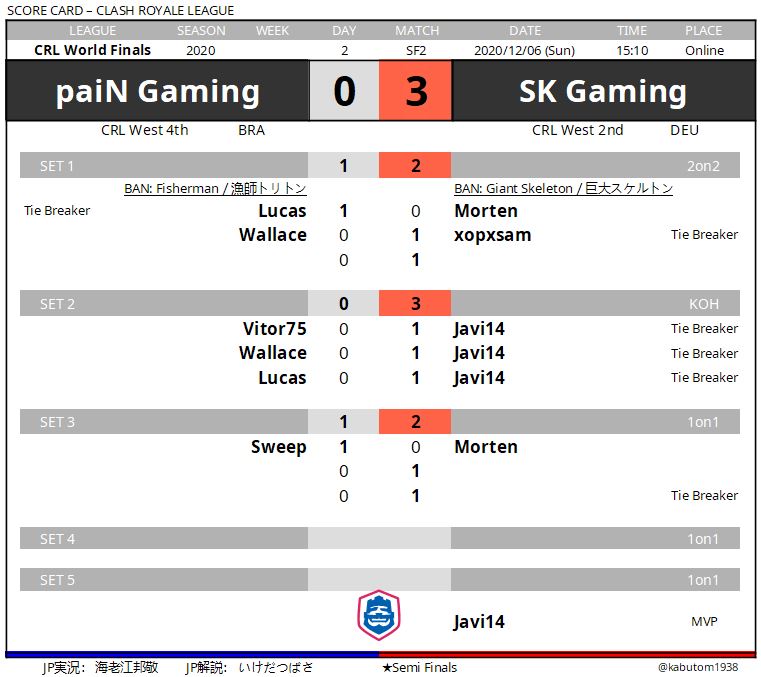 Game1を取って勢いに乗るpaiNがこのゲームも優勢に試合を進めますが、試合の最終局面の呪文の打ち合いにより、何と残り1秒でSKが逆転タイブレーク勝利!