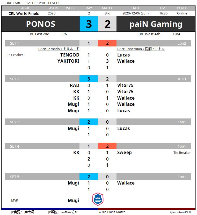 決勝進出が成らなかったPONOSですが、その後の3位決定戦でpaiN Gaming(ブラジル)に3-2で競り勝ち、日本チームとして過去最高成績である3位入賞を果たしました。