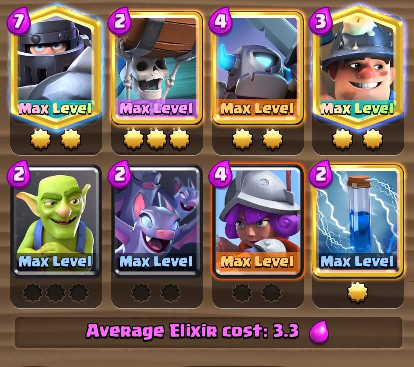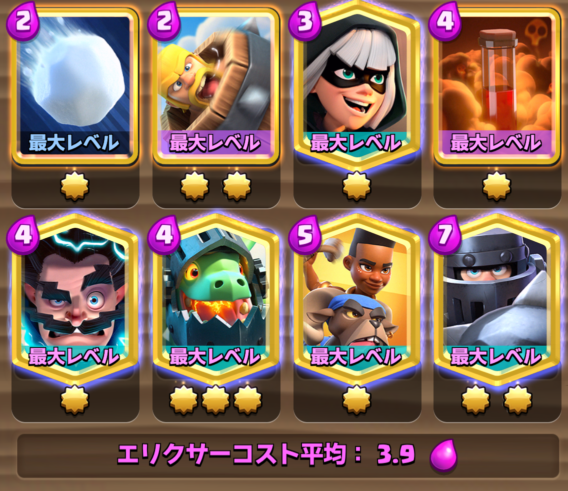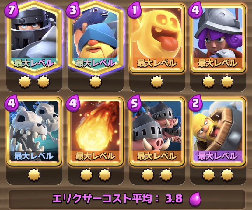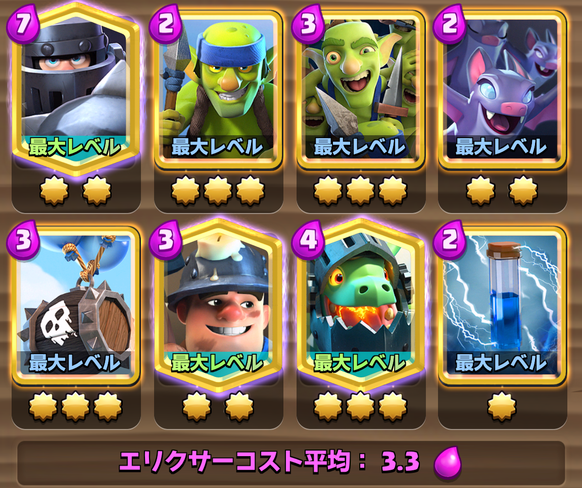 他のメガナイトデッキと違い、細かいユニットで相手スペルを枯渇させていくデッキです。